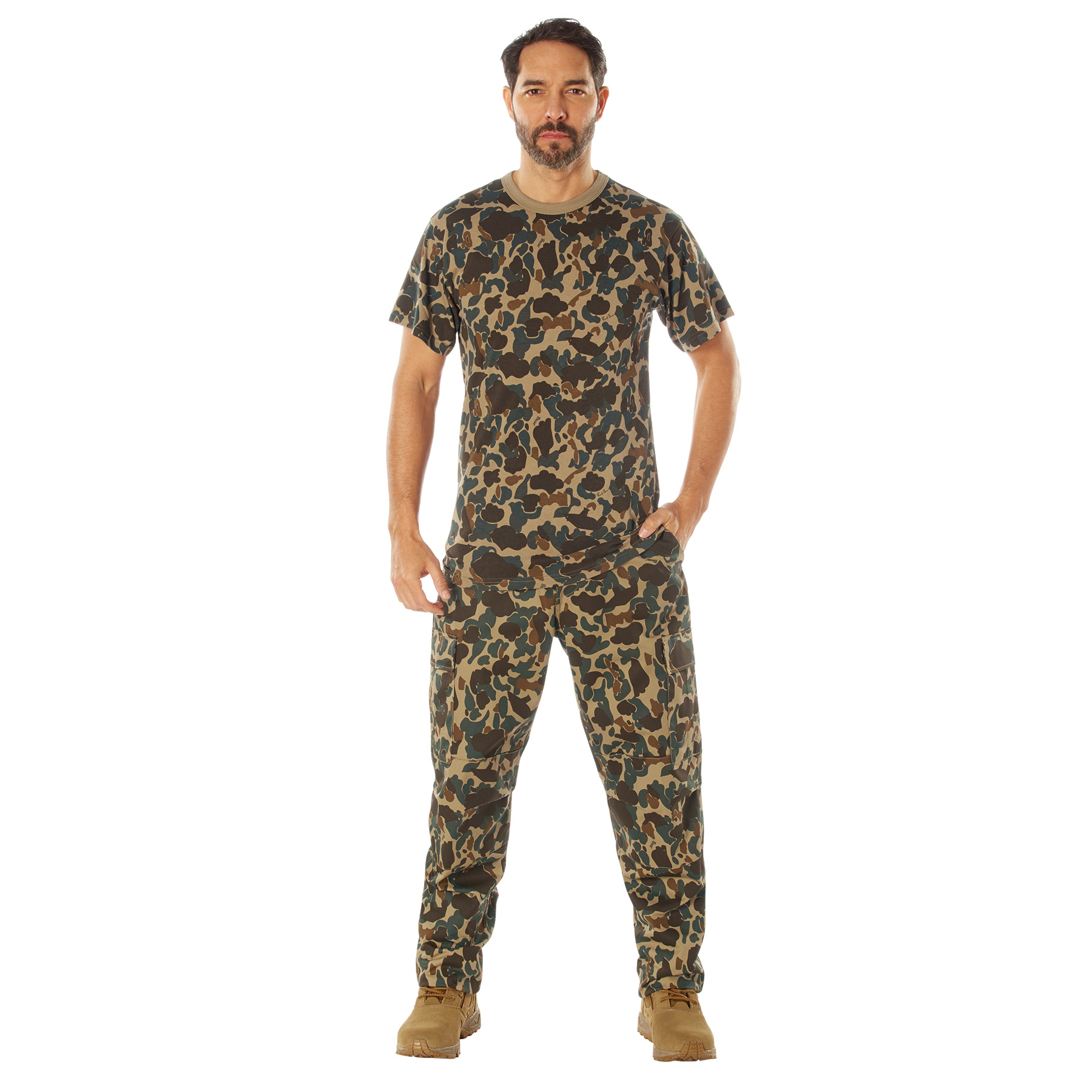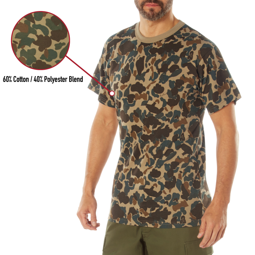 In collaboration with Bear Archery, the revered Fred Bear camouflage pattern comes to life through Rothco’s legendary outdoor apparel and gear, including our rugged T-Shirts. Each item in the Fred Bear Camouflage collection has been crafted using the iconic Fred Bear camo pattern. As Strong as an Ox: Engineered with a breathable 60% cotton / 40% polyester blend, the Fred Bear Camo T-Shirt provides unmatched resiliency and easy-to-care-for maintenance. Whether you are on the hunt or at the range, this bowhunting t-shirt easily withstands rigorous outdoor use while remaining comfortable. The camouflage shirt is great for hunters, fishermen, and other outdoor enthusiasts. Built for Action and Adventure: These crewneck tees consist of reinforced seams at the collar, sleeves, and bottom hem to further enhance the hunting shirt’s durability. With a tag-less neck label, you are free to move around without any itches or scratches. Standard Fit: These camo t-shirts are standard fit, giving you the perfect amount of room and flexibility as you hunt. Their length should go past the waist, providing you with additional coverage. We’ve Got You Covered: Complete your bowhunting wardrobe with a matching pair of Fred Bear Camo Tactical BDU Pants and Fred Bear Camo BDU Shirt.