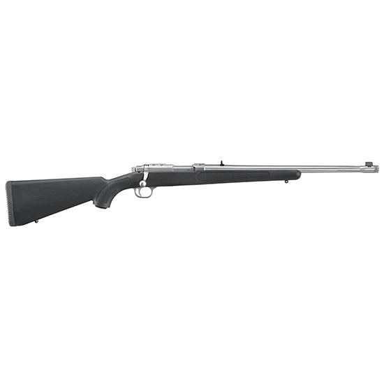 Caliber: 357 Mag - Stock: Black Synthetic - Front Sight: Gold Bead - Rear Sight: Adjustable - Barrel Length: 18.50 - Capacity: 5 - Thread Pattern: 1/2-28 - Finish: Brushed Stainless - Weight: 5.5 lbs. - Twist: 1:16 RH - Material: Stainless Steel - Overall Length: 38.50 - Length of Pull: 13.50 - Grooves: 8 - Threaded cold hammer-forged barrel with factory-installed thread protector results in ultra-precise rifling that provides exceptional accuracy and longevity. - Features a rugged stainless steel bolt with 90� bolt throw and rapid lock time for added accuracy. - Detachable rotary magazine features a unique rotor to separate cartridges and provide reliable feeding. Mounts flush with the stock to eliminate protrusions at the rifle's balance point. - Integral scope mounts machined directly on the solid-steel receiver provide a stable mounting surface for included scope rings eliminating a potential source of looseness and inaccuracy in the field. - Three-position safety is easily accessible and allows the shooter to lock the bolt to load and unload the rifle with the safety engaged. - Also includes: sling swivel studs.