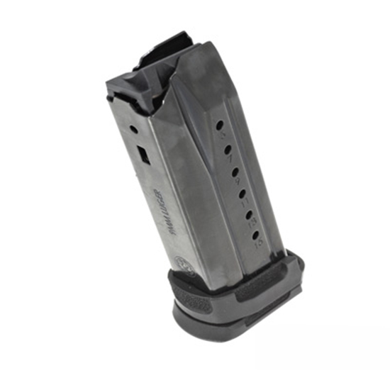 This black oxide alloy steel 15-round 9mm Luger Genuine Ruger� Factory Magazine is compatible with the 10-round 9mm Luger Ruger� Security-9� Compact Pistol when used with the included polymer magazine adapter. This Genuine Ruger� Factory Accessory is made in the USA.