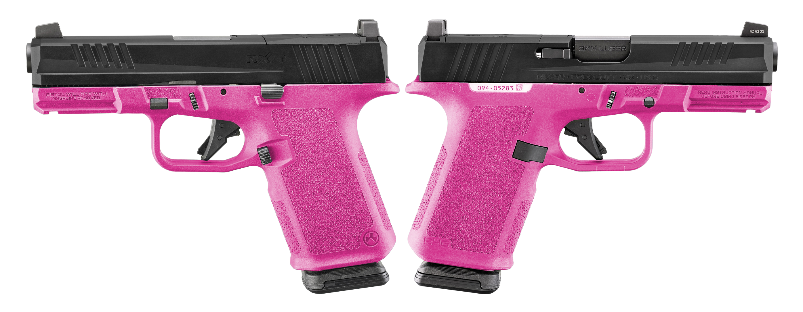 RUGER RXM 9MM PISTOL 4" BBL HOT PINK, MAGPUL EHG, O.R. 2-15RD MAGS - ORION EXCLUSIVE