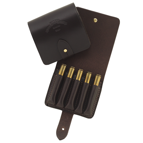 When you're hunting bigger game, the classically good-looking Safari Five Wallet is designed to accommodate your high-powered cartridges. Features individually stitched cartridge loops. One size to fit: .338 Winchester, .340 Weatherby, .375 H&H, .416 Rigby and .458 Winchester. Gun Fit - Rifles .458 Winchester Mag Gun Fit - Rifles .416 Rigby Gun Fit - Rifles .375 H&H Gun Fit - Rifles .340 Weatherby Gun Fit - Rifles .338 Winchester Gun Fit - Rifles .300 Winchester Mag Gun Fit - Rifles .300 Weatherby Mag