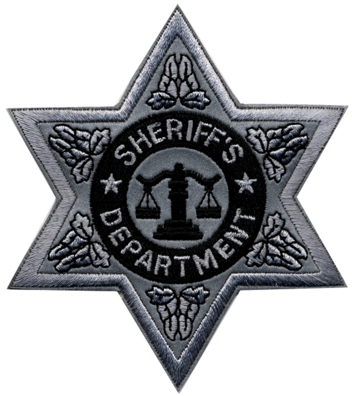 SHERIFF DEPT Reflective 6-Point Star Badge Patch - Silver - 3.5''x3.5''