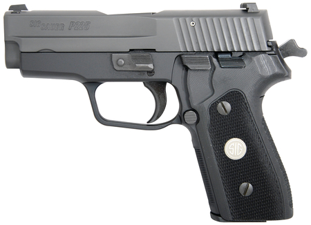 | Double action/single action. Classic style of the original P225. Enhanced features include a Short Reset Trigger. Fully machined stainless steel slide finished in a black Nitron finish. Hard coat anodized alloy frame. Two-piece black checkered G10 grips. Single stack, slim profile. | ||