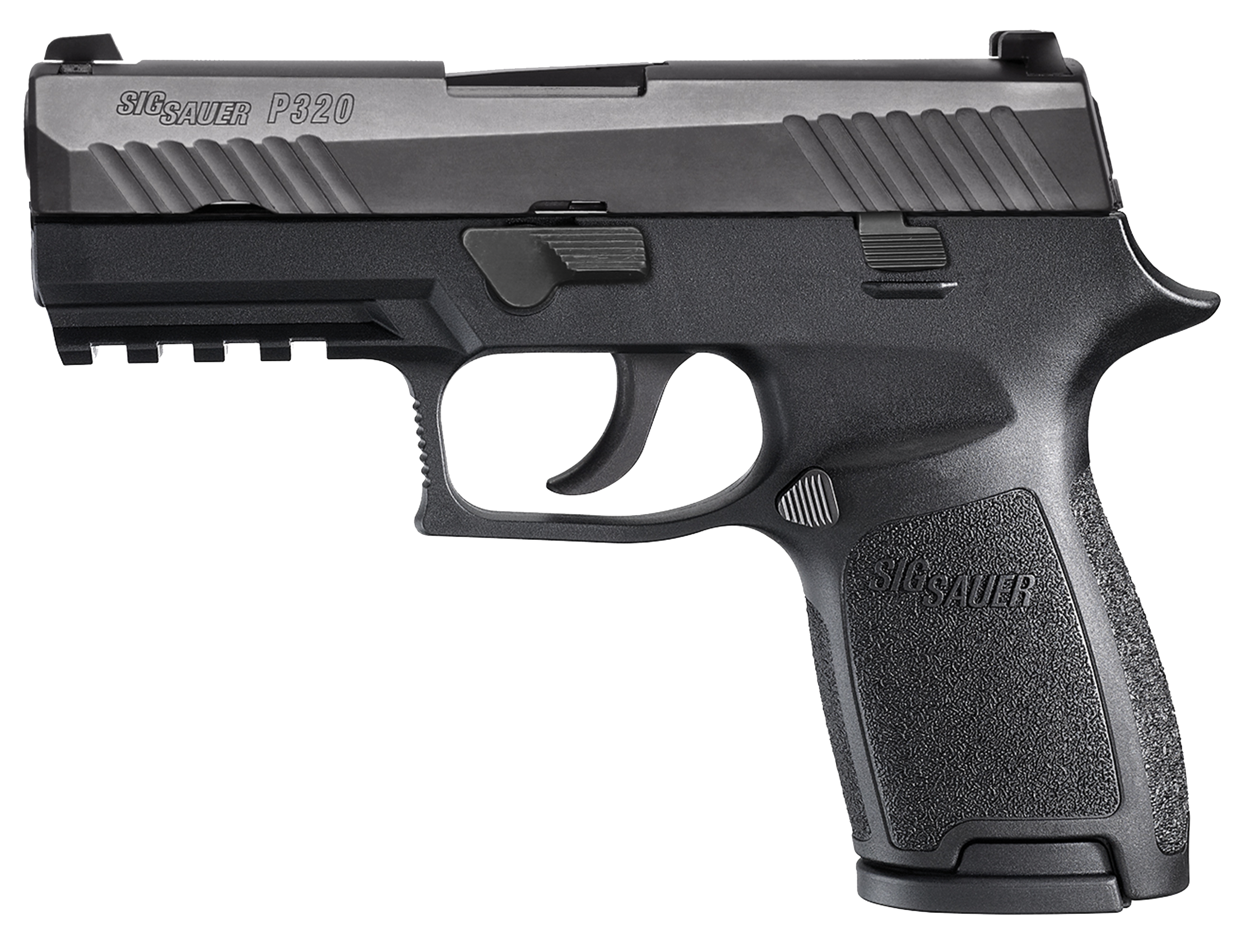 Sig's Pistols are engineered to perform anywhere at any time and under any circumstance. They boast unique advanced features that stand out among the rest. The P320 is a striker-fired modular polymer-framed service pistol designed from the ground up with the input of law enforcement officers. It offers a smooth crisp trigger an intuitive 3-point takedown and unmatched modularity to fit any shooter and any situation. The P320 also has ambidextrous slide catch lever and a reversible magazine release for full ambidextrous operation. The P320 Compact model features a stainless steel frame and slide and a M1913 Picatinny rail.This model has a black frame and slide 4-point safety contrast sights and comes with two 15-round magazines. The slide also has a nitron coating.