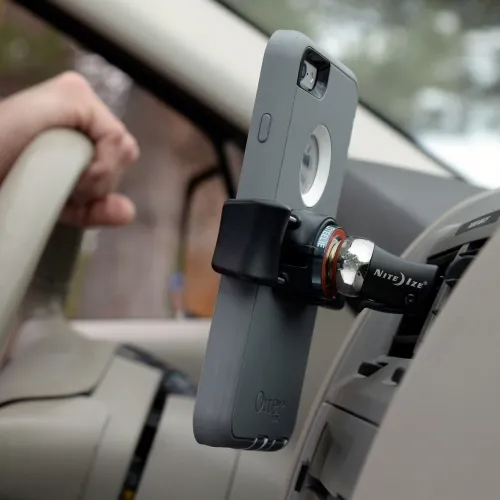 Next time you hit the road, stay hands free by locking your smartphone into the Steelie FreeMount Vent Kit. This universal kit works with most types of vehicle vents and most any phone on the market. Phones stay gripped securely in the adjustable FreeMount, which then connect magnetically to the vent mount. The FreeMount arms can be adjusted to hold phones in place with a firm squeeze, and the release button on the back makes it easy to remove your phone with a smooth one-handed motion. The vent mount is a portable solution that can be moved easily from car to car by simply unsnapping the strong cam locking lever, then clicking it back in place on the next vehicle vent. The round shape of the ball on the vent mount allows the FreeMount to smoothly articulate for endless viewing angles. As an added bonus, when the FreeMount is on your phone, it allows it to connect magnetically to other convenient surfaces like your refrigerator or tool box.