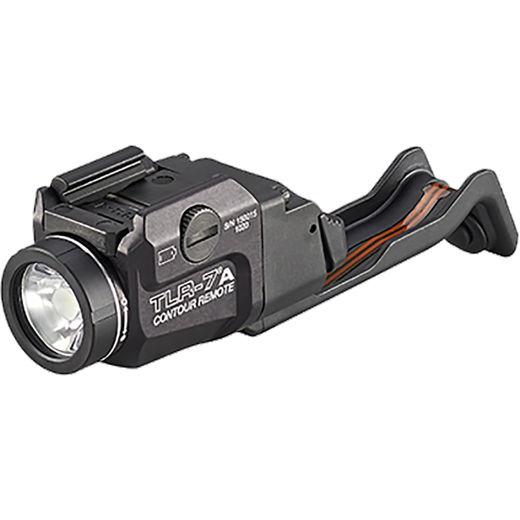 The TLR-7A Contour Remote is a Glock compatible light designed for one-handed shooting. Features a pressure controlled grip switch that provides momentary operation and an ambidextrous rear on/off switch. The rail clamp system securely attaches/detaches to compatible handguns without the need for tools. The TLR-7A is powered by one CR123A battery and is IPX7 waterproof to 1m for 30 minutes.