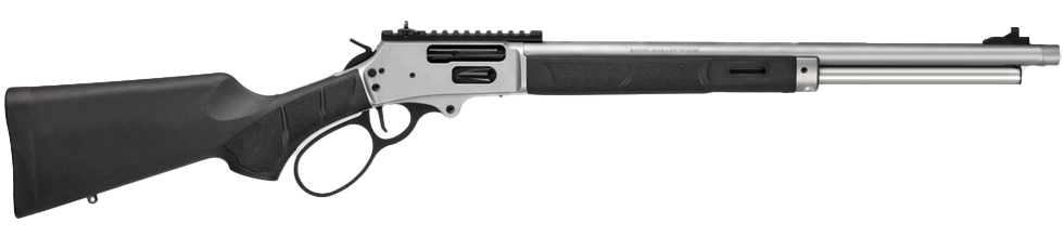 More power more energy more versatile. Introducing the Model 1854 now chambered in 45-70. A triumph of over 170 years of craftsmanship this lever-action rifle seamlessly melds precision engineering with timeless design. Experience the perfect blend of heritage and innovation- experience Smith & Wesson Smooth. - Extended Rail- A longer rail giving you more customization on sight placement and preference. - Large Loop Lever- Increased surface area to allow for cycling the smooth action with or without gloves. - Smooth Action- Smith & Wesson's iconic smooth action allows you to run the action for faster follow-up shots. - 20 barrel length with 1:20 RH twist 8 groove. - 11/16 -24 threaded muzzle with thread protector. - Forged 416 stainless steel receiver. - Black synthetic stock with textured grip panels. - Flat trigger with crisp break. - Capacity 6+1. - Large loop lever. - Cross-bolt manual safety. - Adjustable XS Sights� ghost ring sight with gold bead front sight. - M-LOK� slots on forend with Picatinny-style rail on top. - width 1.6 in - length 37.8 in - weight 113.6 oz - CALIBER 45-70 GOV'T - SIZE RIFLE - CAPACITY 6 - ACTION LEVER - BARREL LENGTH 20 - GRIP POLYMER - SIGHTS GOLD BEAD - OPTIC READY YES - SAFETY CROSS-BOLT - COLOR/FINISH BLACK/SILVER - STATE COMPLIANCE CA CO CT DE HI IL MD MA NJ NY RI VT WA DC - THREADED BARREL YES - BARREL MATERIAL 410 SS - FRAME STAINLESS STEEL - LASER NO - 10LB TRIGGER NO - STOCK FIXED - MODEL MODEL 1854