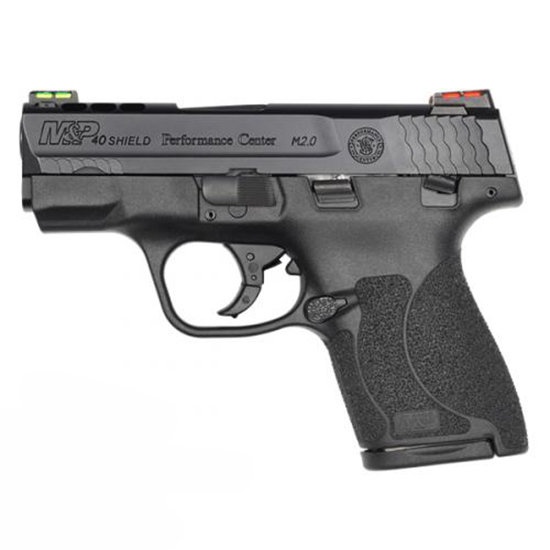 The reality of protection is that you never know when you'll need it. We took the power and features of our full sized M&P pistols and put them into a slim lightweight pistol the size of your hand. The M&P Shield is an easy to conceal pistol that offers professional grade features with simple operation and reliable performance day or night. The Performance Center Ported M&P9 Shield offers discerning shooters premium features including a factory ported barrel and slide. One million Shield owners can't be wrong. - Features - Ported Barrel & Slide - PC Tuned Action - Manual Thumb Safety - HI VIZ Fiber Optic Sights - Front Cocking Serrations - Slim Compact Profile for Concealed Carry - Polymer Frame with Embedded Stainless Steel Chassis System for Steel-on-Steel Contact Between Slide and Frame - Two Magazines Included: - One Standard Flush-Fit One Extended Finger Groove - INCLUDES - Performance Center Branded Cleaning Kit - Collapsible Cleaning Rod with Rotating T-Handle - 10 Cotton Cleaning Patches - Nylon Cleaning Brush - Bronze Bore Brushes and Nylon Jags (22 cal 9mm/357/38 cal 40/10mm cal 45 cal) - Nylon Slotted Tips - Model: Performance Center Ported M&P 40 SHIELD M2.0 Hi Viz Sights - Caliber: 40 S&W - Capacity: 6+1 7+1 - Safety: Thumb Safety - Barrel Length: 3.1 (7.9 cm) - Overall Length: 6.1 - Front Sight: HI VIZ Fiber Optic Green - Rear Sight: HI VIZ Fiber Optic Red - Action: Striker Fire - Grip: Synthetic - Weight: 17.9 oz / 507.5g - Barrel Material: Stainless Steel - Slide Material: Stainless Steel - Frame Material: Polymer - Slide Finish: Armornite - Frame Finish: Matte Black