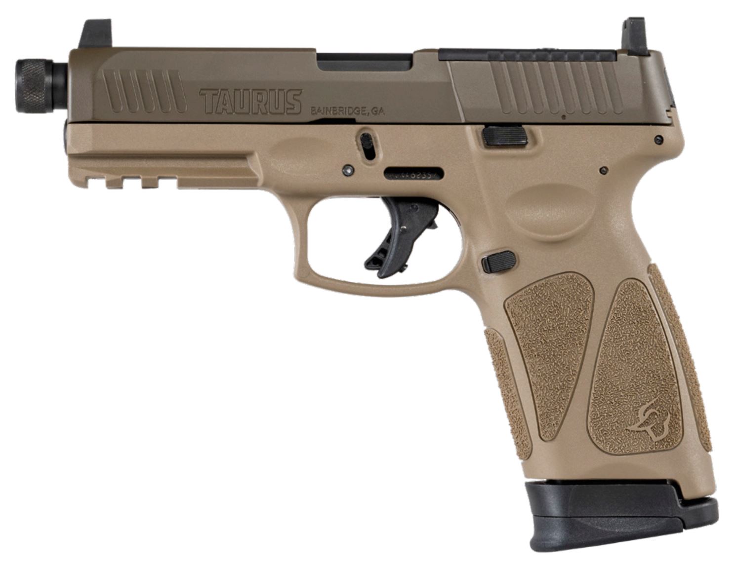 PRODUCT SPECS Caliber: 9mm LugerCapacity: 10 RDSMagazines: 2x10Firing System: StrikerAction Type: SA w/RestrikeFront Sights: FixedRear Sights: Drift AdjustableSafety: Striker block Trigger SafetyVisual Loaded Chamber IndicatorFrame Size: Full SizeGrip Material: PolymerSlide Material: Alloy SteelSlide Finish: Cerakote Patriot BrownBarrel Length: 4.5 in.Overall Length: 7.76 in.Overall Width: 1.20 in.Overall Height: 5.38 in.