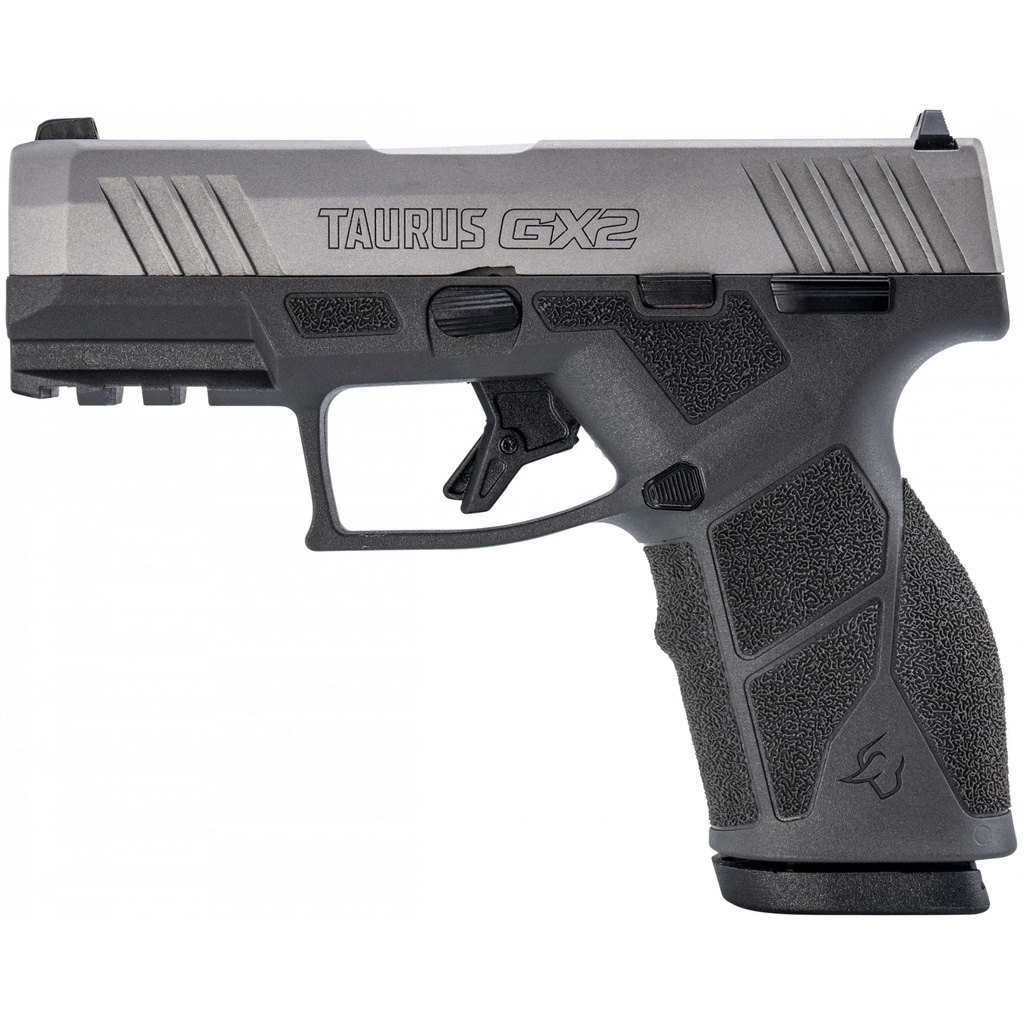 The Taurus GX2 is a versatile and affordable striker-fired pistol designed with a polymer frame and a 3.3" barrel. Weighing just 20.6 oz, this modular handgun features a textured polymer grip and includes a manual safety for added security. The Taurus GX2 is chambered in 9mm and is equipped with fixed front sights and a serrated, drift-adjustable rear sight for accurate targeting. With improvements over its predecessor, the G2c, this model boasts enhanced trigger performance, better sights, and additional rail space for accessories, while incorporating design elements from the GX4.
