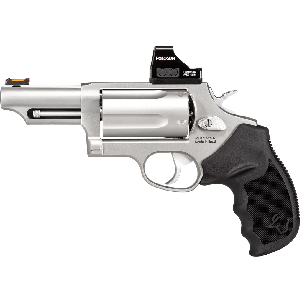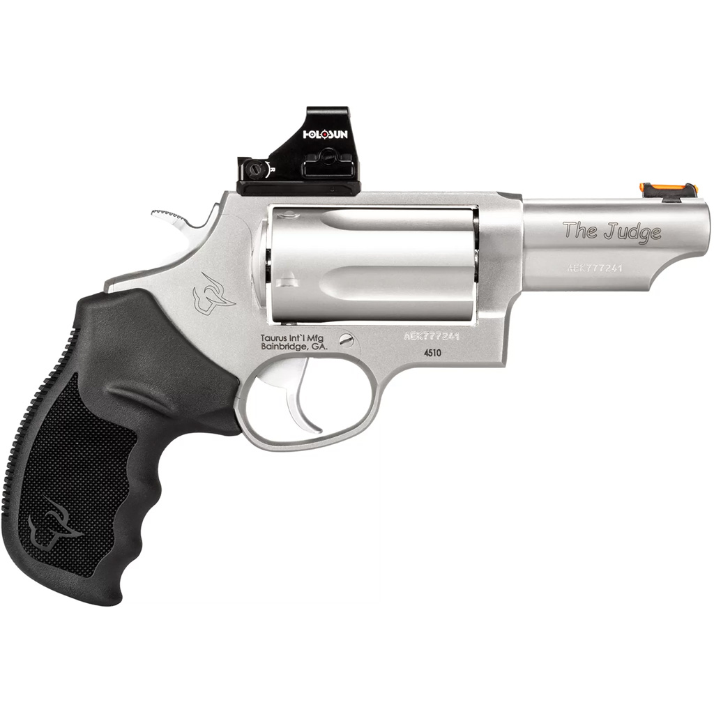 More than a decade since it was first introduced, the legendary Taurus Judge still rules. Today, it’s available in more than a dozen models. Capable of chambering both 45 Colt and 410 shotshell, it’s the original five-shot game changer. The Magnum is capable of handling 3" .410 shot shells. T.O.R.O. models are Optics Ready