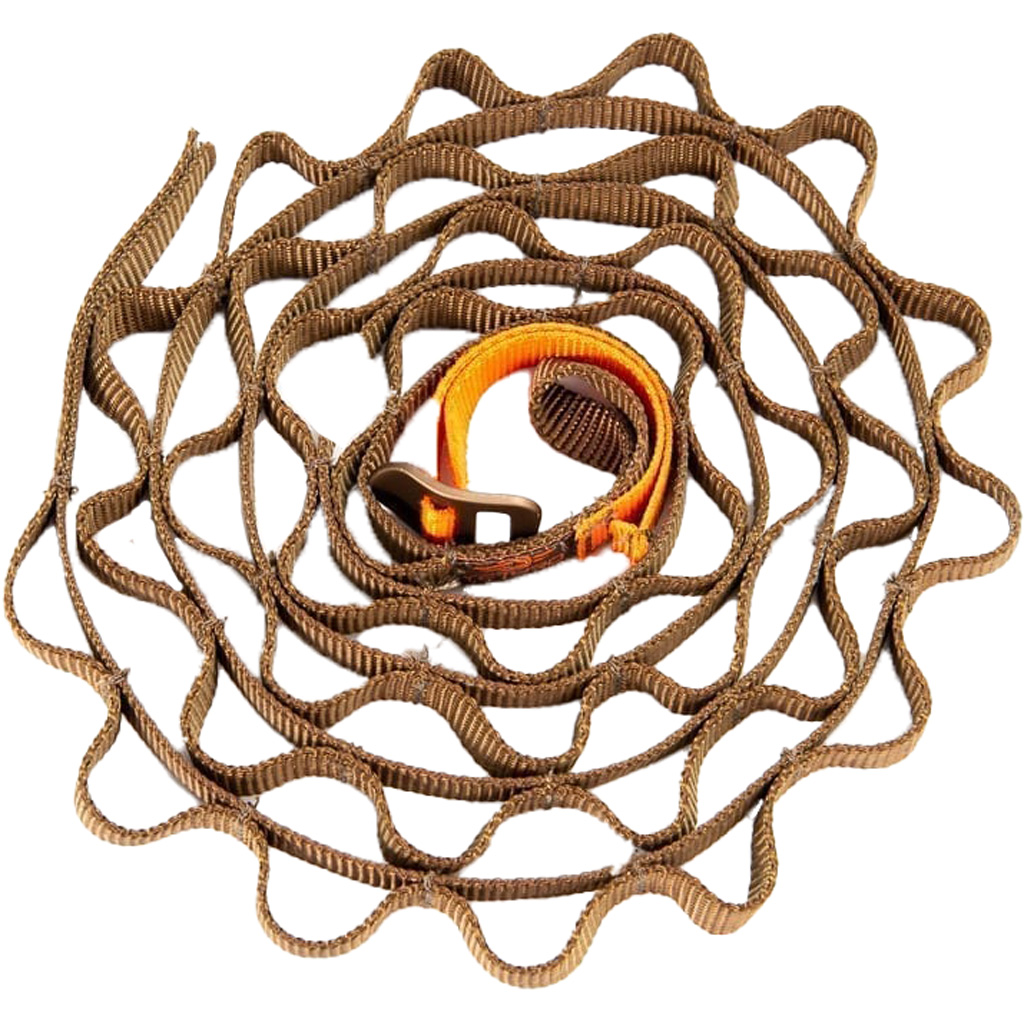 The patent pending Tethrd HYS Strap is the ultimate public land legal gear hanger. The HYS Strap is made of high strength, mildew and rot resistant polyester that enables you to hang your stuff in whatever way makes sense to you. Put some stuff around the back side of the tree, some on the left, and some on the right. You can easily move your gear and position it wherever it makes sense for your style of hunting. To attach it, simply girth hitch it with any of the existing loops, or use the included T-hook for a quick connection. If you hunt small trees, cut it to length.