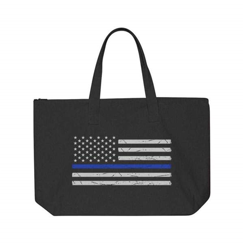 This stylish Thin Blue Line Tote Bag was made for the Mom or Dad on the go. It can be used as a diaper bag, shopping bag, overnight or weekender bag, beach bag, storage bag, craft bag and more! Show your support for our American Law Enforcement officers with this high-quality tote bag. Dimensions are 22 x 15 x 5, making it large enough to keep all of your items in one convenient location. The bag also includes an interior zippered pocket to separate your valuables (i.e., wallet, phone, keys) from the rest of the bag's contents. Make a statement with the Distressed Thin Blue Line Tote bag.  Available in two colors.