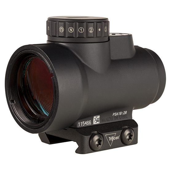 The Trijicon Miniature Rifle Optic (MRO) is a reflex-style sealed sight intended for use on rifles carbines and shotguns to provide fast target acquisition. It is designed to be used with both eyes open providing the operator with maximum situational awareness. The large aperture and tapered light path maximizes the viewing area in such a small optic allowing for fast target engagement especially from non-standard shooting positions. It also features ambidextrous brightness controls sub-flush adjusters advanced lens coatings and a fully sealed waterproof hard anodized forged 7075-T6 housing making the MRO the ultimate mini reflex sight. - The MRO HD is optimized for use with a magnifier with a re-engineered objective lens to produce a refined 2.0 MOA center dot surrounded by a 68 MOA segmented circle reticle. The ambidextrous reticle and brightness control allows the user to choose between a full reticle or center dot only. - Length x Width x Height: 2.9 in x 1.7 in x 3 in (73.66mm x 43.18mm x 76.2mm) - Weight: 5.6 oz. (158.76g) - Magnification: 1x - Objective Size: 25mm - Illumination Source: LED - Illumination Settings: 16 Total - Power Source: CR2032 - Battery Life: 2.5 Years of continuous use at dot-only day setting 3 (Setting 5 of 8) at 70F (21C); 75 days of continuous use for complex reticle at day setting 3 (setting 5 of 8) at 70F (21C) - Adjustment Range: 70 MOA - Eye Relief: Infinite in. - Mount: Low Mount - Housing Material: 7075- T6 Forged Aluminum - Finish: Matte Black - Submersion Depth: 100 ft. (30m) - Operating Temperature: -60 F to +160F (-51.11c to 71.11c)