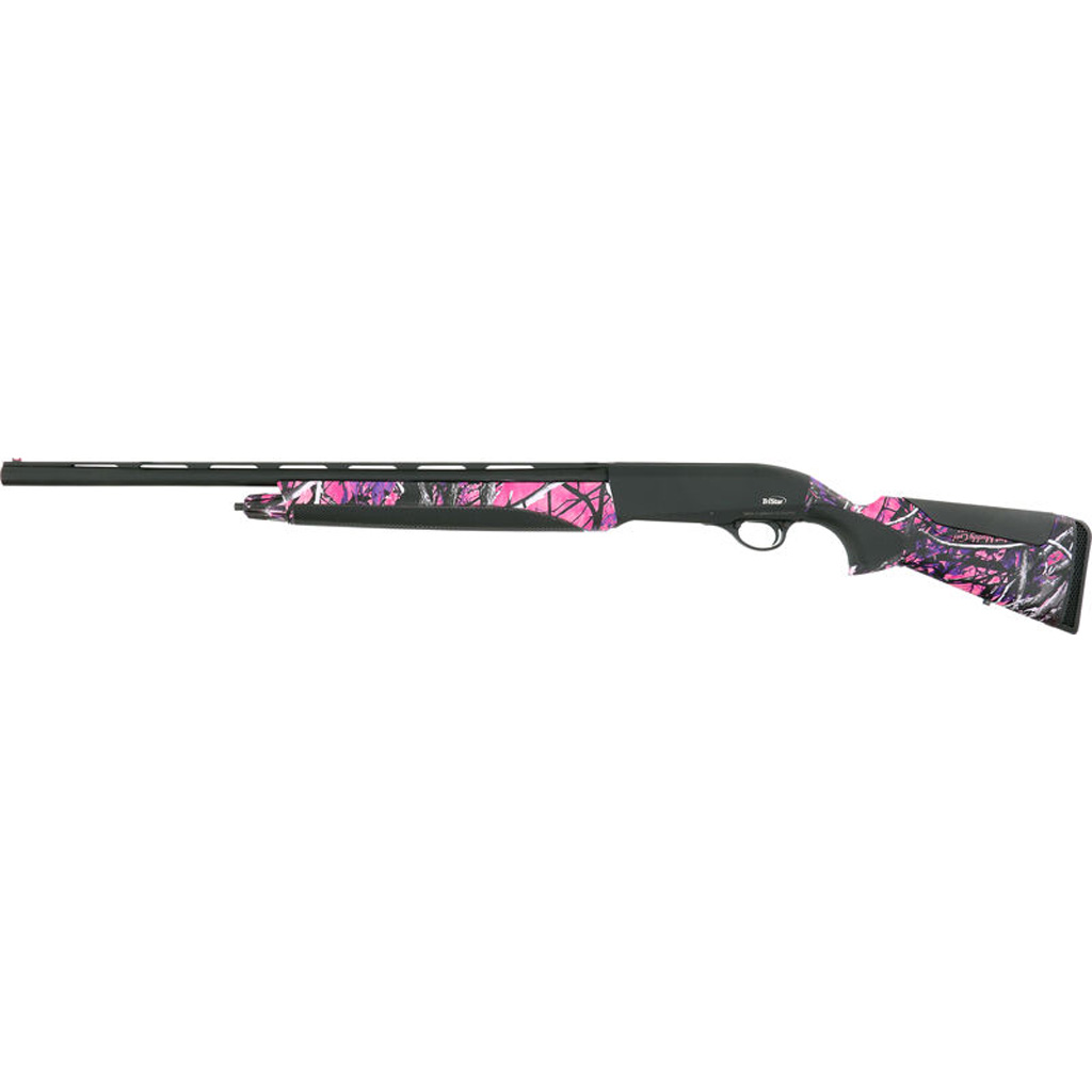 The Tristar Raptor II Youth Field Shotgun is a versatile and lightweight shotgun designed for younger shooters or those who prefer a compact build. Chambered in 20 gauge with a 3-inch chamber, this shotgun features a 24-inch barrel and a durable Muddy Girl camo synthetic stock and forend. Equipped with a red fiber optic front sight, it ensures quick and accurate target acquisition. The matte blue finish adds durability, while the cross-bolt safety provides enhanced safety. With a 5+1 capacity and multi-choke options (Full, Modified, IC), this shotgun is perfect for hunting, clay shooting, or general field use.