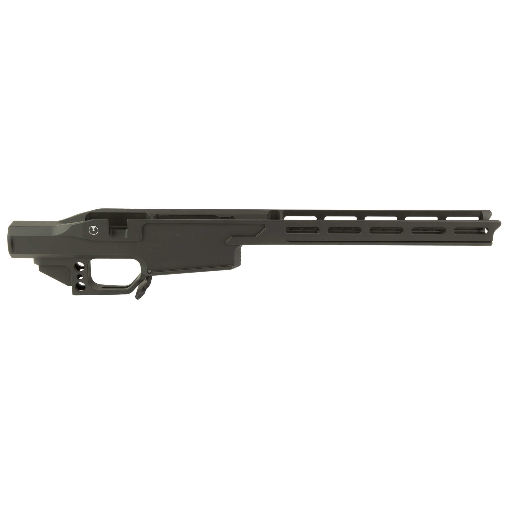 The Ultradyne Chassis is crafted from a solid bar of 6061 T6 Aircraft Aluminum for exceptional strength and durability. The one-piece design weighs between 1.1 and 1.3 pounds, depending on the model. This makes it suitable for both hunting rifles that weigh as little as 6 pounds and long range target rifles that weigh up to 16 pounds. When paired with the Ultradyne Adjustable Butt Stock, it is lighter than most factory stocks yet has the ability to add up to 5 pounds with optional weights.Features :
