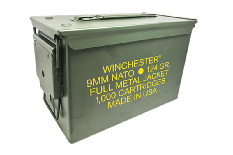 Winchester Ammunition, MFG# Q4318AC, UPC: 20892224179, UOM: EA, USA, 9mm NATO, 124 grain, Full Metal Jacket, 1000/can, WINC, WINCAM40, WINCAMALL, AM40, AMALL, Case: 10