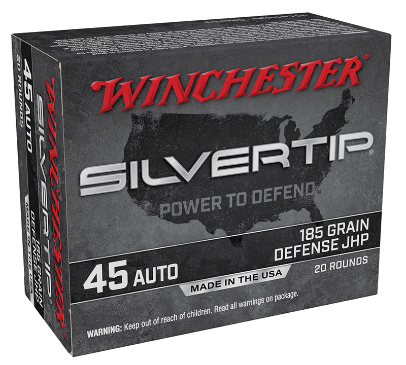 Winchester Ammunition, MFG# W45AST, UPC: 020892227835, UOM: BOX, Silvertip, 45 ACP, 185 grain, Silvertip JHP, 20/box, WINC, WINCAM40, WINCAMALL, AM40, AMALL, Case: 10