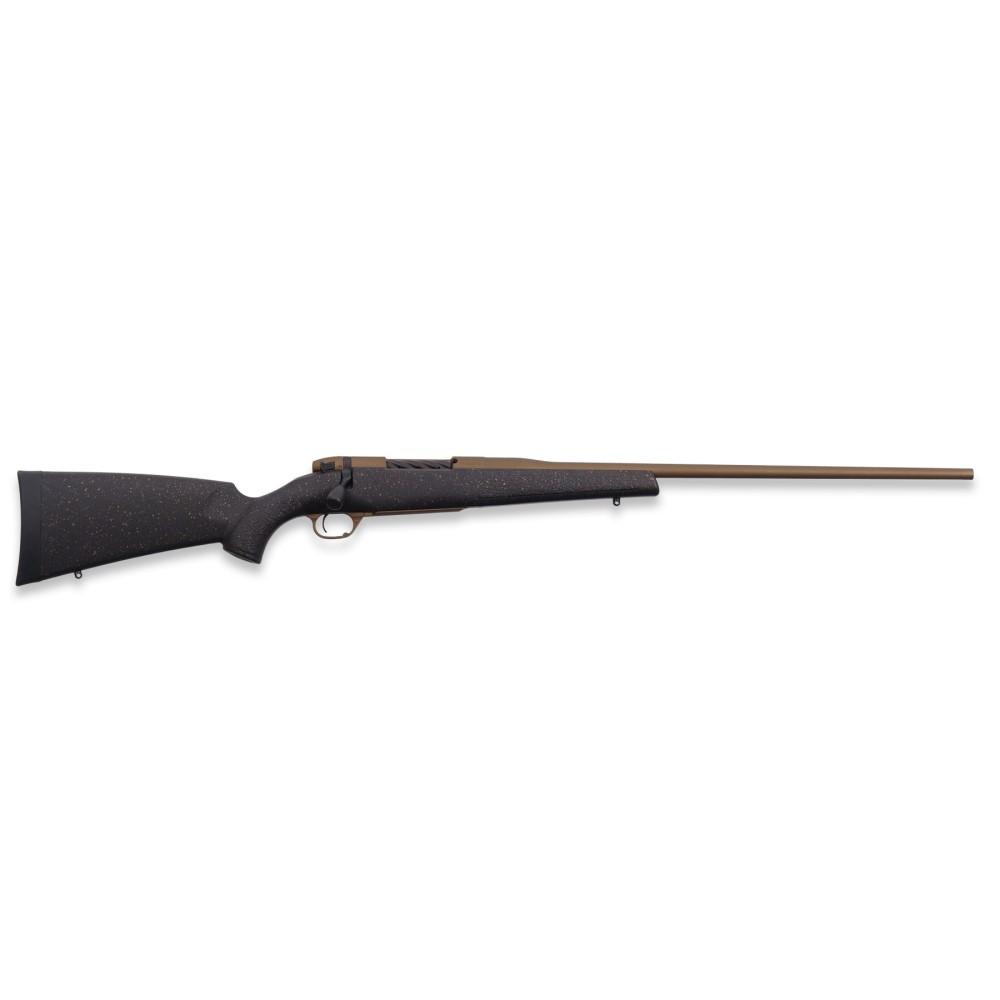 Echoing the shape and ergonomics of the Mark V Backcountry 2.0 family of rifles that debuted in 2021 the Hunter’s polymer stock features the same trim flat-bottomed forend ambidextrous palm swells aluminum pillar construction and is finished in a Urban & Black Speckle.