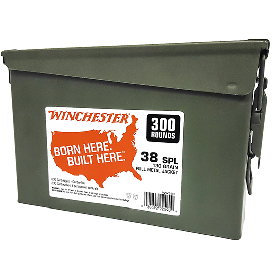 Winchester USA White Box stands for consistent performance and outstanding value offering high-quality ammunition to suit a wide range of hunter's and shooter's needs. This item comes 300 rounds per can and 2 cans per case. - Caliber: 38 Special - Bullet Type: Full Metal Jacket - Bullet Weight: 130 gr - Muzzle Energy: 185 ft / lbs - Muzzle Velocity: 800 fps - Rounds Per Box: 300