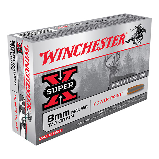 Super-X ammunition has provided exceptional quality and outstanding performance for all types of hunters and shooters who rely on its time-proven dependability backed by legendary excellence. - Caliber: 8mm Mauser - Bullet Weight: 170 gr - Bullet Type: Power-Point - Muzzle Energy: 2102 ft / lbs - Muzzle Velocity: 2360 fps - Rounds Per Box: 20 - Rounds Per Case: 200