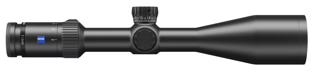 The Conquest V4 riflescopes are for hunters and shooters whose lifestyle and adventures involve traditional and long-range hunting as well as shooting and long-range shooting. They were designed as a lightweight high-performance product line for various demanding hunting and shooting applications. They are by any standard 'best-in-class'. - The Conquest V4 family is based on a 4x zoom ratio incorporates a 30 mm main tube and consists of the: 3-12x44 3-12x56 4-16x44 4-16x50 and 6-24x50 models. Each model delivers 90% to-the-eye light transmission offers .25 MOA click values capped windage turret or external locking windage turret a large range of total elevation and windag travel and various traditional and smart second focal plane reticles. - ZEISS Conquest V4 models are backed by the ZEISS Limited Lifetime Transferable Warranty AND Five-Year No-Fault Policy. - ZEISS Conquest V4 3-12x56 - An exceptional riflescope for hunting in low-light and capable of taking manageable mid- to long-range shots. The 56mm objective lens diameter and illuminated reticle option guarantee aiming accuracy even in the most unfavorable low-light conditions. If your hunting grounds keep you in the blind on the stand or in the field to the last moments of light this riflescope was designed and built with you in mind. Select from two proven duplex style reticle designs: #20 plex or the #60 duplex with center illuminated dot. - Performance - Magnification - 3-12 x - Effective lens diameter 27.7-56 mm - Light transmission 90% - Exit pupil diameter 9.2-4.7 mm - Twilight factor 9.1-25.9 - Field of view at 100 m (yds) 12.7-3.2 m (38-10 ft) - Objective viewing angle 7.2�-1.8� - Diopter adjustment range + 2.0 -3.0 dpt - Eye relief 90 mm (3.54 ) - Parallax setting 91.4 m (100 yds) - Adjustment range at 100 m 200 cm - Adjustment per click at 100 m 1/4 MoA (0.7 cm /100 m) - Centre tube diameter 30 mm - Eyepiece tube diameter 44 mm - Objective tube diameter 62 mm - Features - LotuTec Nitrogen filled + + - Water resistance 400 mbar - Physical - Operating temperature -25�C + 50�C (-13�F + 122�F) - Length 368 mm (14.5 ) - Weight (without inner rail) 610 g (21.5 oz)