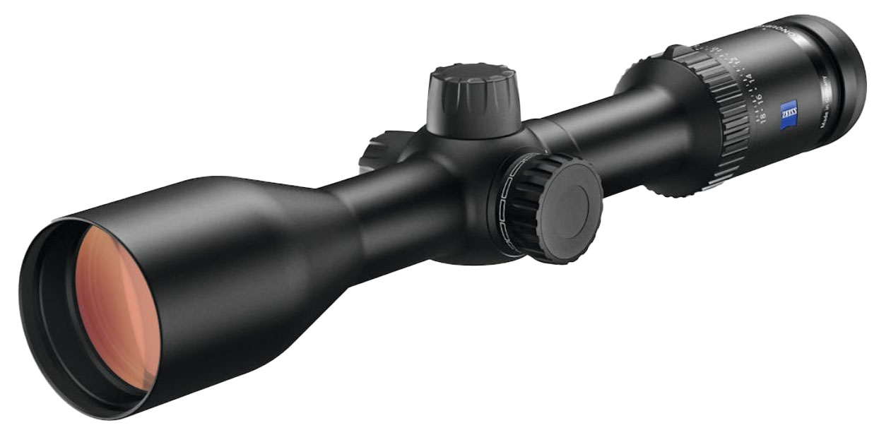 The zoom range coupled with the lightweight and lean design of this riflescope makes it ideal for hunting - period! The 3x setting is perfect for hunting in the thick timber or under tree canopies during low-light conditions. With the 18x magnification setting mid- to long-range hunting and shooting is mastered. With over 100 minutes of elevation adjustment long-range hunting and shooting can be accomplished at greater distances. The compact design is reliable easy to mount on hunting rifles and has features that perform as good as its optics. This model is available with capped elevation and windage turrets with a simple yet highly effective duplex style #6 reticle. You can also select from external elevation and windage turret options that incorporate ZEISS' highly desired Ballistic Stop. The Ballistic Stop assures you of your zero each and every time by creating a most solid and definitive stop at zero. You can choose from two second focal plane moa-based smart reticles: ZBR-2 and ZMOA-2. This riflescope yields a spectacular image and unmatched performance. - With the Conquest� V6 riflescope ZEISS has once again set a new standard in image quality and mechanical precision. Three models cover all facets hunting and shooting - including long-range. Whether for sitting stalking game or long-range applications the Conquest V6 with 6x zoom is engineered to impress in any environment or scenario. - It combines legendary ZEISS quality and technology with field-proven design into one robust package that�s within every serious hunter's range. With 92% light transmission T* (T star) six-layer mult-coatings FL (fluoride) lenses throughout and a wide field of view the ZEISS Conquest V6 delivers incredibly high image quality and clarity even in the harshest conditions and most challenging environments. The sophisticated optical package is protected by an aluminum housing built for whatever nature throws at it. Rain snow dust dirt and fingerprints are easily addressed by the LotuTec� protective lens coating. - For the hunter who demands versatility and uncompromised long-range capability the ZEISS Conquest V6 is the scope that proves distance is nothing. - Performance - Magnification 3-18 � - Effective lens diameter 28.6-50 mm - Light transmission 92% - Exit pupil diameter 9.5-2.8 mm - Twilight factor 8.5-30.0 - Field of view at 100 m (yds) 12.4-2.1 m (37-6 ft) - Objective viewing angle 7.1�-1.2� - Diopter adjustment range + 2.0 -3.0 dpt - Eye relief 90 mm (3.54) - Parallax setting 45 m-infinity (50 yds-infinity) - Square adjustment range at 100 m 300 � 170 cm - Adjustment per click at 100 m 1/4 MoA (0.7 cm /100 m) - Centre tube diameter 30 mm - Eyepiece tube diameter 45.5 mm - Objective tube diameter 56 mm - Features - LotuTec Nitrogen filled + + - Water resistance 400 mbar - Physical - Operating temperature -25�C + 50�C (-13�F + 122�F) - Length 338 mm (13.3) - Weight (without inner rail) 630 g (22.2 oz) - Capped Windage